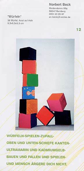 auf dem Sims auf beiden Seiten des Treppenhauses* sind 36 farbige Würfel locker aufgestellt...als Kontrast zur umgebenden Architektur