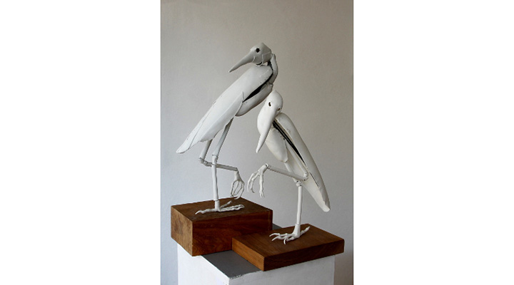 Unverkennbar findet die Künstlerin ihre Inspiration während ausgedehnter Hundespaziergänge in der Natur. Diese bildet perfekte Formen, Linien und Flächen, welche die Künstlerin bei der Konstruktion ihrer Tierplastiken analysiert und in neuer Dimension verarbeitet.