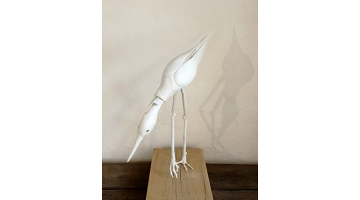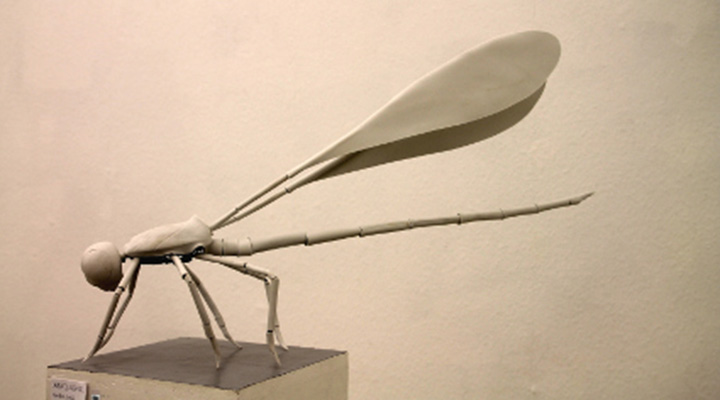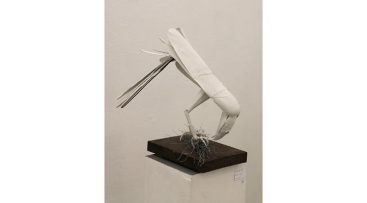 Hauchdünne, lichtdurchscheinende Porzellanteile werden nach dem Brand miteinander kombiniert und es entstehen überdimensionale Insekten und Spinnen, oder auf spitzen Krallen balancierende Vögel.