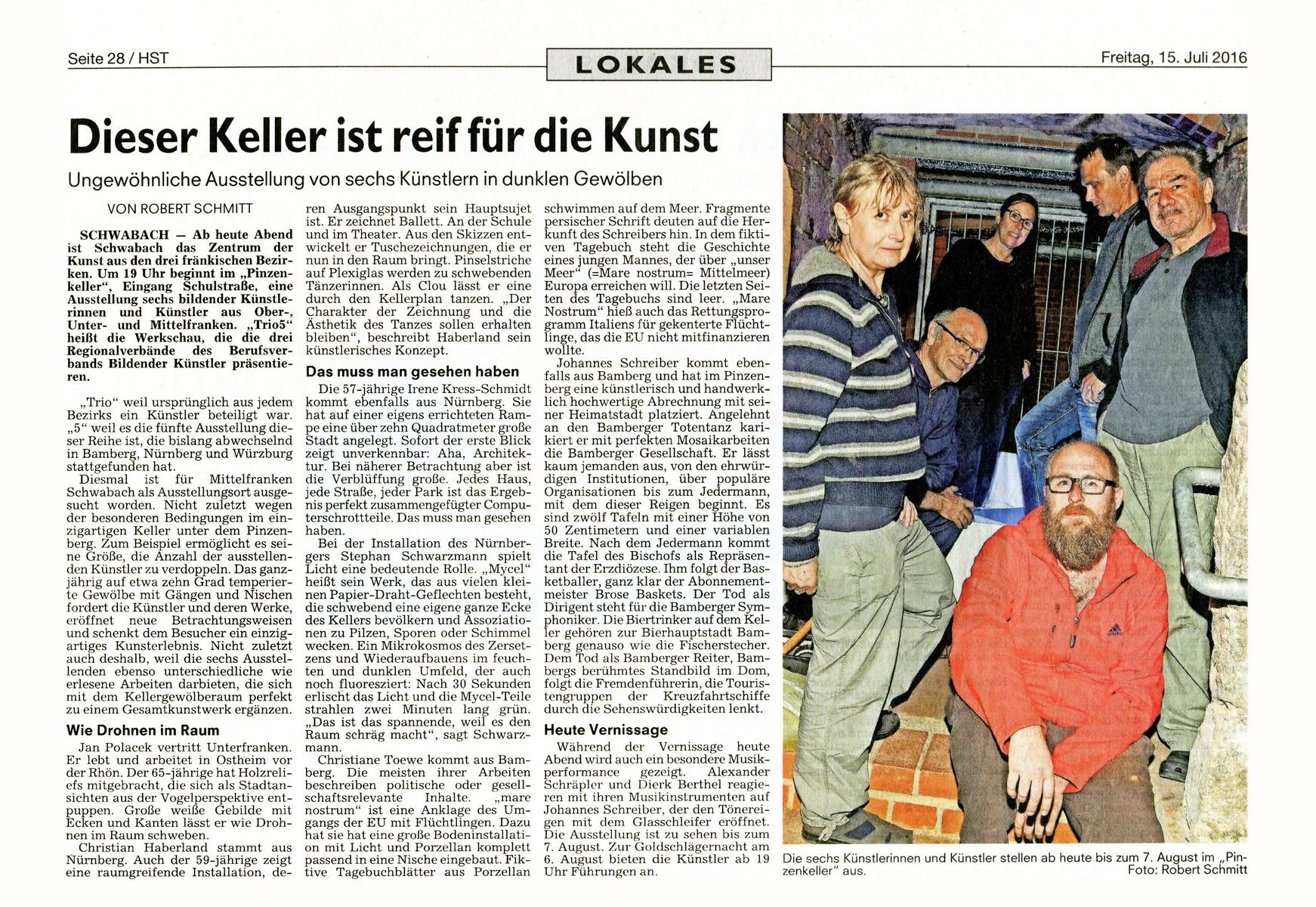 Der letzte Ausstellungsort Pinzenkeller in Schwabach stellte durch die Einzigartigkeit der Ausstellungsräume in vielerlei Hinsicht eine Besonderheit dar: Das ganzjährig auf ca. 10° temperierte Kellergewölbe mit Gängen und Nischen forderte die ausstellenden Künstler und deren Kunstwerke, eröffnete neue Betrachtungsweisen und schenkte dem Besucher ein einzigartiges Kunsterlebnis.